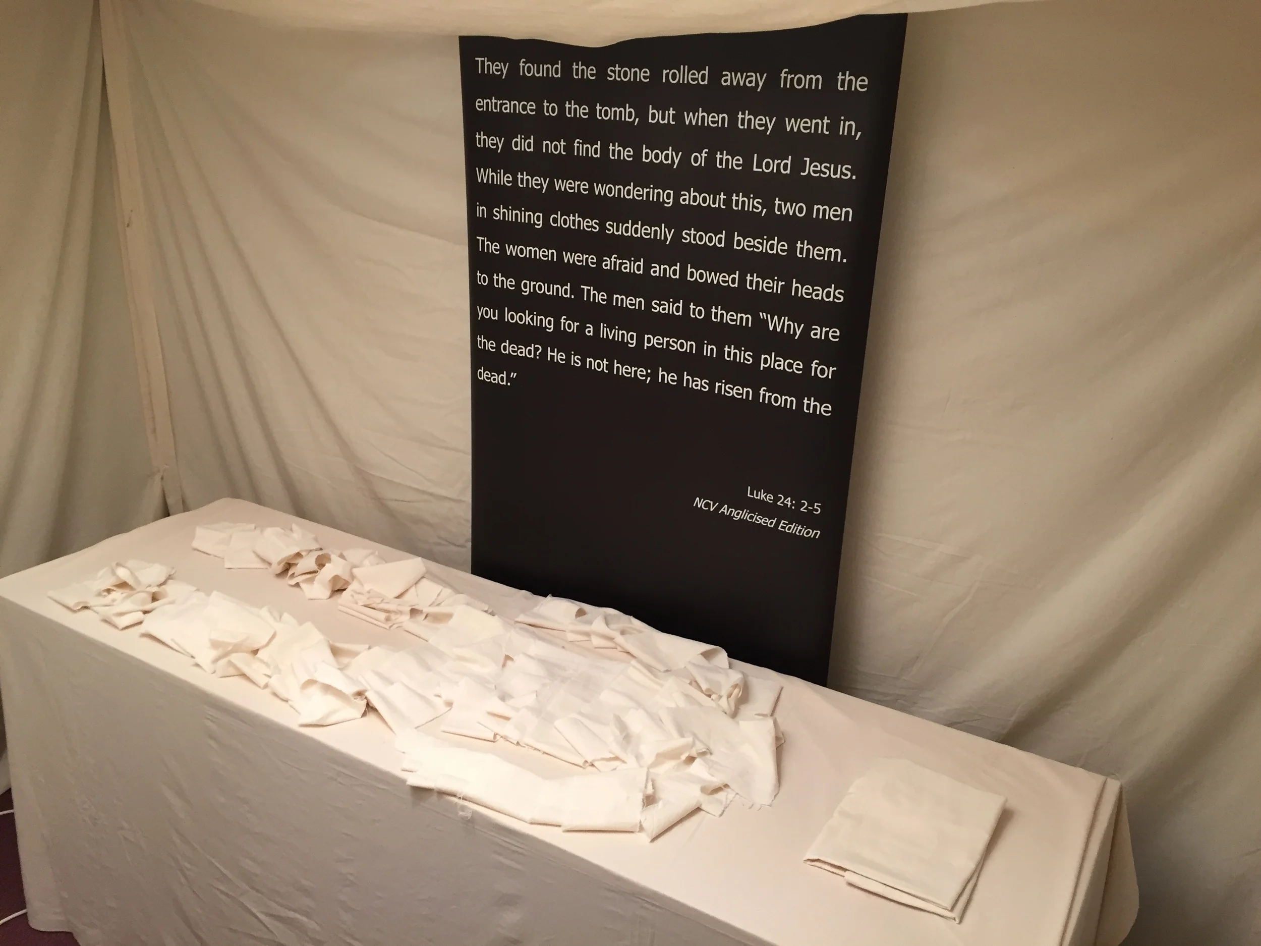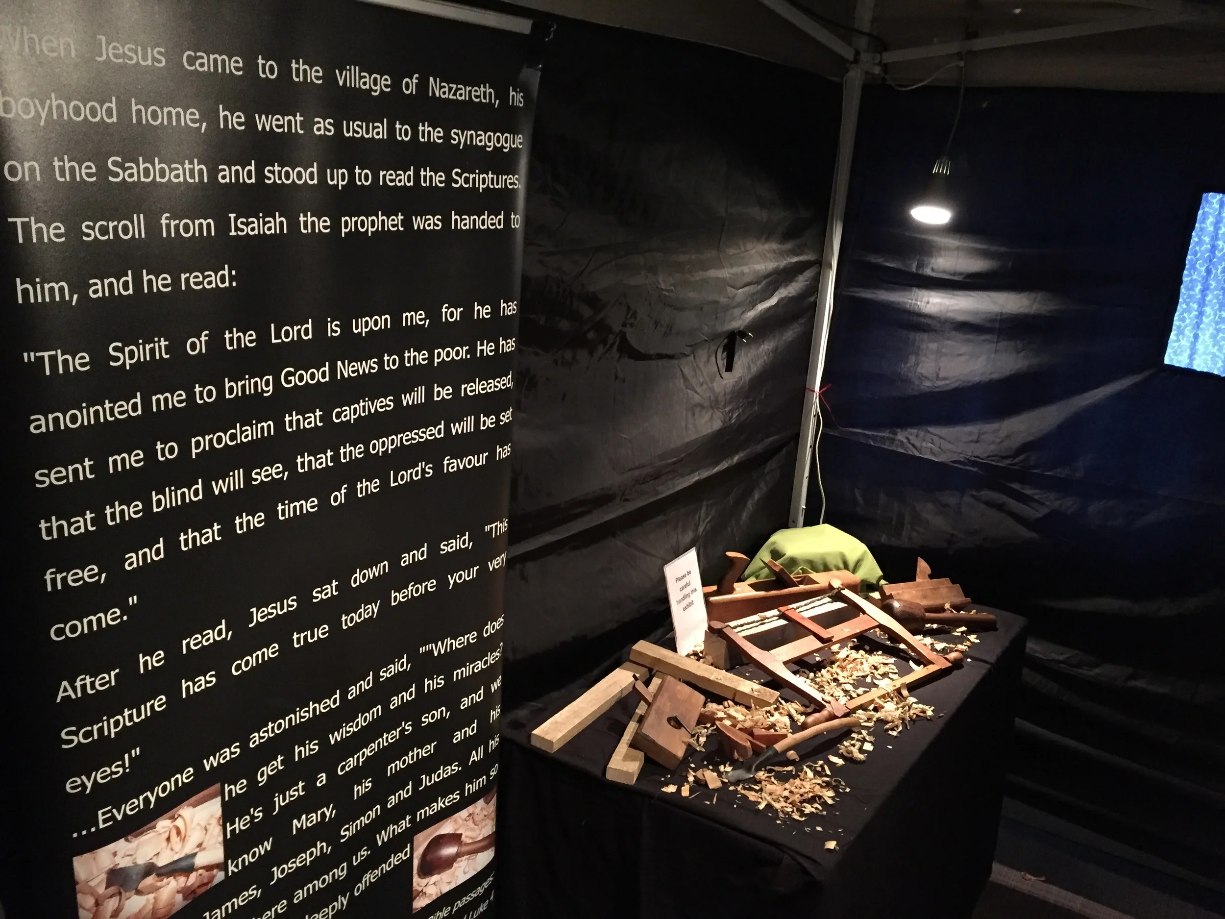 This morning's church service was very different from usual, as people explored the One Way Exerience exhibition. Thus, the week began with an interactive look at the life of the Lord Jesus Christ. Here are just some of the displays on show at Globe Lane.