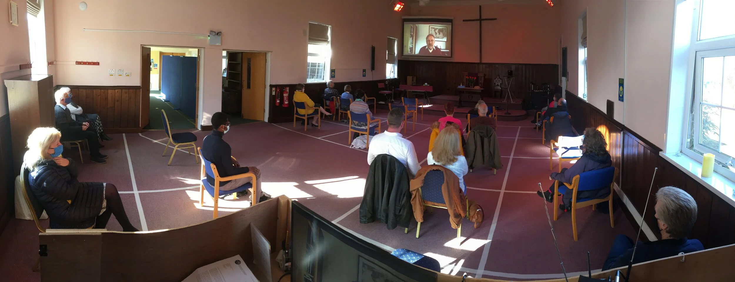 Just about one third of the church’s members came to our first hybrid service on Sunday 11th October. We watched our online production, taking part in the worship (as best we could under COVID-19 regulations) and listening to Joe Gaddis’s testimony and message from Vicenza in Italy.